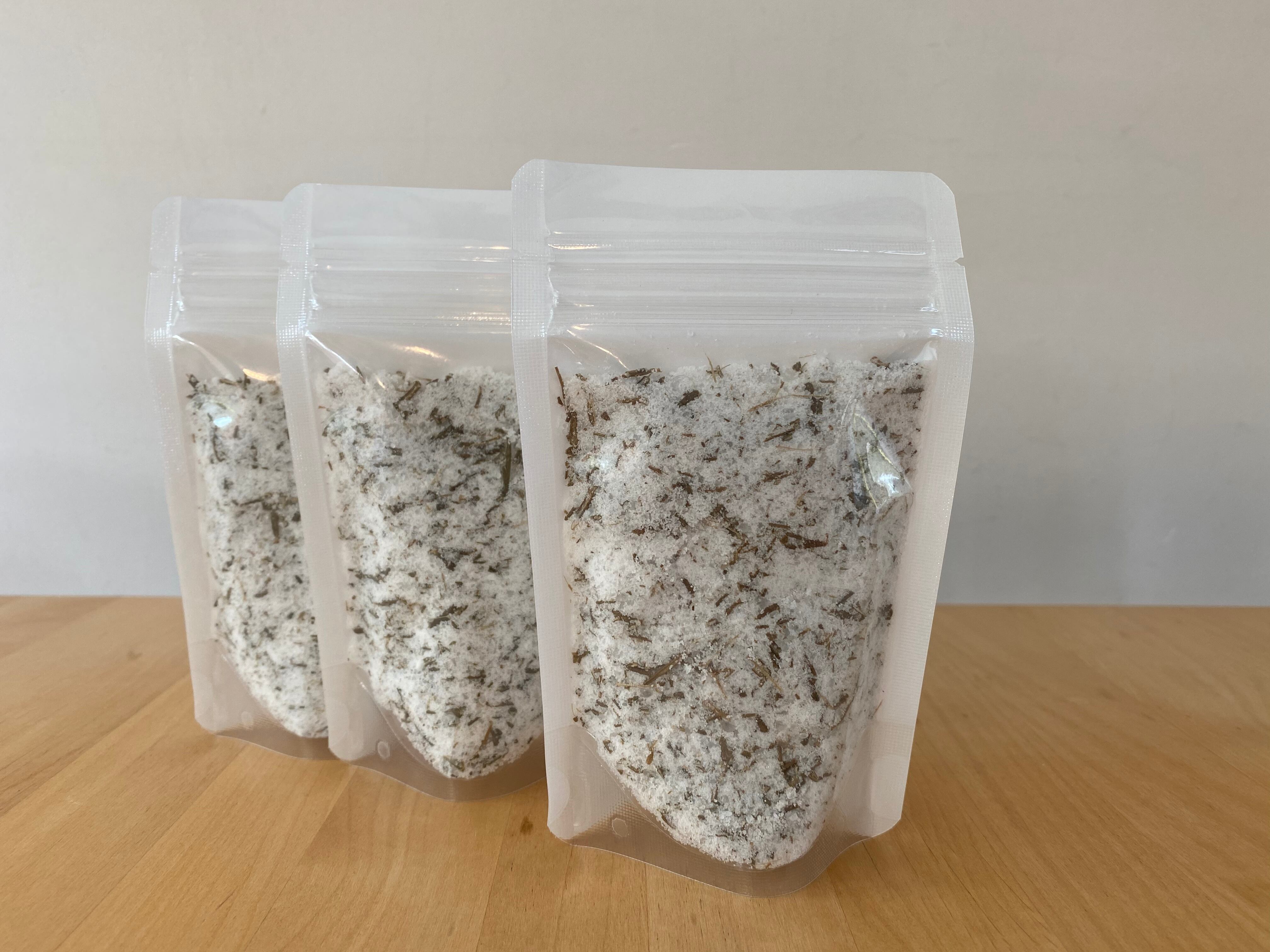 お店のローズマリーと岩塩で作ったハーブソルト。